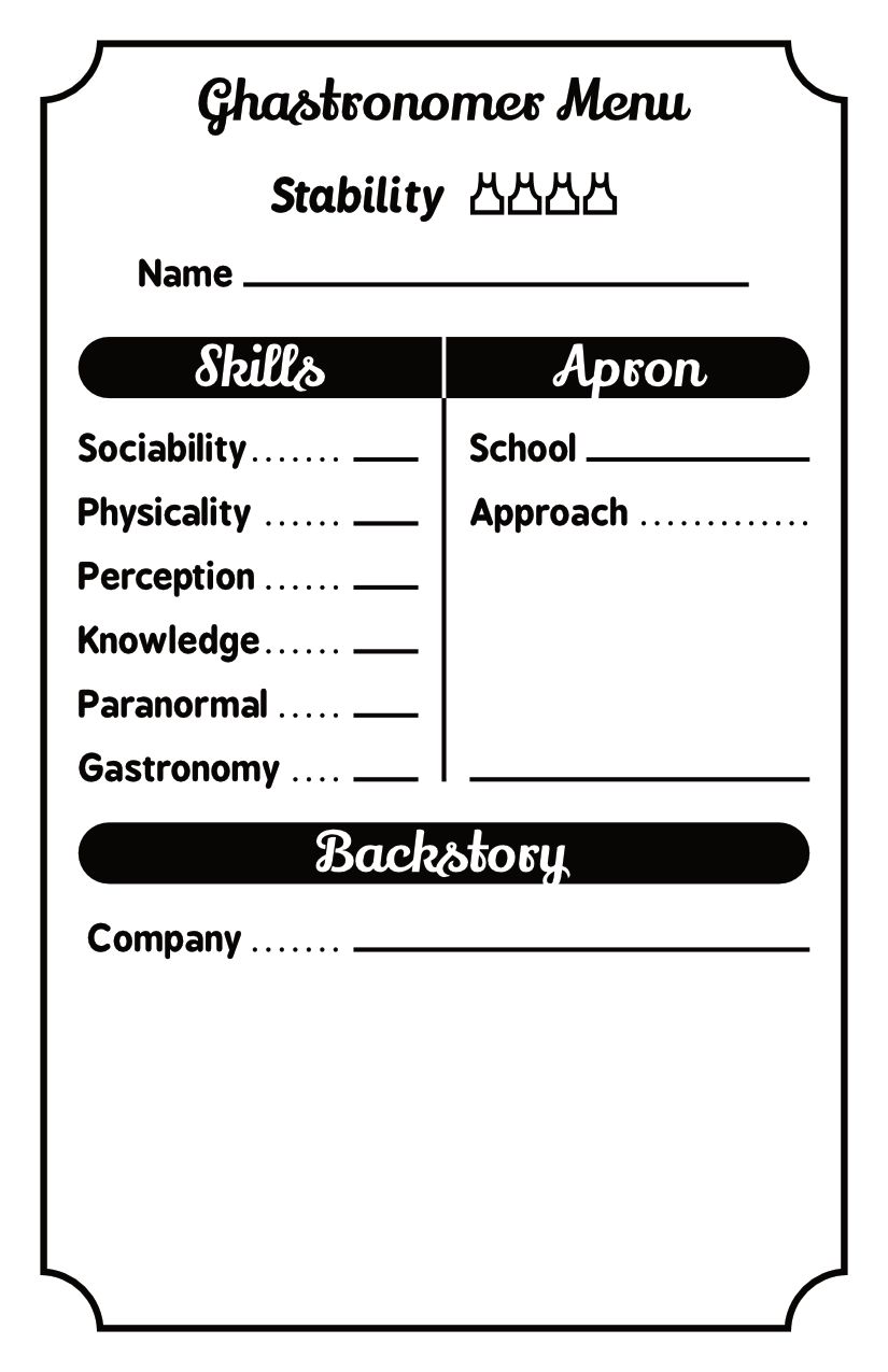 Redesigned Ghastronomy's character sheet + removed my deadname from the PDF, for the game's 2 year anniversary.